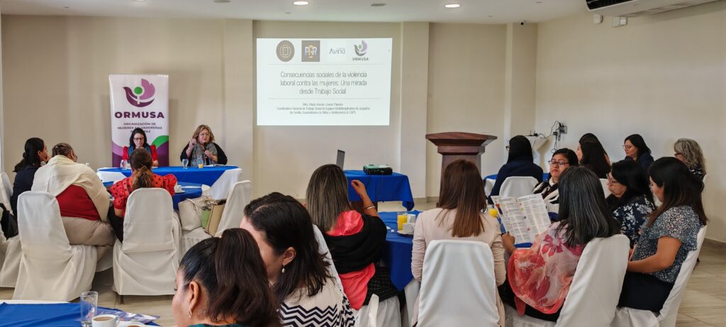 San Salvador, 27 de noviembre de 2025. El conversatorio: 𝑪𝒐𝒏𝒔𝒆𝒄𝒖𝒆𝒏𝒄𝒊𝒂𝒔 𝒔𝒐𝒄𝒊𝒂𝒍𝒆𝒔 𝒅𝒆 𝒍𝒂 𝒗𝒊𝒐𝒍𝒆𝒏𝒄𝒊𝒂 𝒍𝒂𝒃𝒐𝒓𝒂𝒍 𝒄𝒐𝒏𝒕𝒓𝒂 𝒍𝒂𝒔 𝒎𝒖𝒋𝒆𝒓𝒆𝒔: 𝒖𝒏𝒂 𝒎𝒊𝒓𝒂𝒅𝒂 𝒅𝒆𝒔𝒅𝒆 𝒆𝒍 𝑻𝒓𝒂𝒃𝒂𝒋𝒐 𝑺𝒐𝒄𝒊𝒂𝒍 fue realizado por la Organización de Mujeres Salvadoreñas por la Paz, ORMUSA en coordinación con la Procuraduría Especializada para las Mujeres de la Procuraduría General de la República, en el marco del Día Internacional de la Eliminación de la Violencia contra las Mujeres.