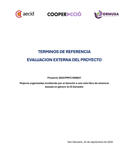 Evaluación externa del proyecto – Mujeres organizadas incidiendo por el derecho de una vida libre de violencia basado en genero en El Salvador22 de septiembre de 2025TDR EN APERTURA...Leer términos de referenciaContratación de servicios profesionales para actualización de Aplicación APPFEM para organizaciones de la REDFEM26 de mayo de 2025TDR FINALIZADO...Leer términos de referenciaAsistencia técnica para diseño de campaña regional sobre educación digital, enfocada en prevenir prácticas de riesgo, así como facilitar la denuncia de delitos y hechos de violencia digital contra las mujeres12 de mayo de 2025TDR FINALIZADO...Leer términos de referenciaContratación de servicios profesionales para diseño de proceso formativo sobre la violencia digital contra las mujeres y acceso a la justicia9 de mayo de 2025TDR FINALIZADO...Leer términos de referenciaAsistencia técnica para facilitación en formación sobre “Reparación integral del daño con enfoque de derechos humanos” y “Ruta de Atención a Víctimas de violencia” para Procuraduría General de la Republica5 de mayo de 2025TDR FINALIZADO...Leer términos de referenciaContratación de servicios profesionales para diseño de proceso formativo sobre el uso de medios digitales para justicia para las mujeres víctimas de violencia2 de mayo de 2025TDR EN APERTURA...Leer términos de referenciaAsistencia técnica para diseño del módulo de formación denominado “Reparación integral del daño con enfoque de derechos humanos” para judicaturas del Órgano Judicial25 de abril de 2025TDR FINALIZADO...Leer términos de referenciaAsistencia técnica para el rediseño del Observatorio laboral y económico de las mujeres y el alojamiento del nuevo indicador relacionado al gasto publico, 2 Convocatoria7 de abril de 2025TDR EN APERTURA...Leer términos de referenciaAsistencia técnica para rediseño del observatorio laboral y económico, de las mujeres y el alojamiento del nuevo indicador relacionado al gasto publico28 de marzo de 2025TDR EN APERTURA...Leer términos de referencia12345›»